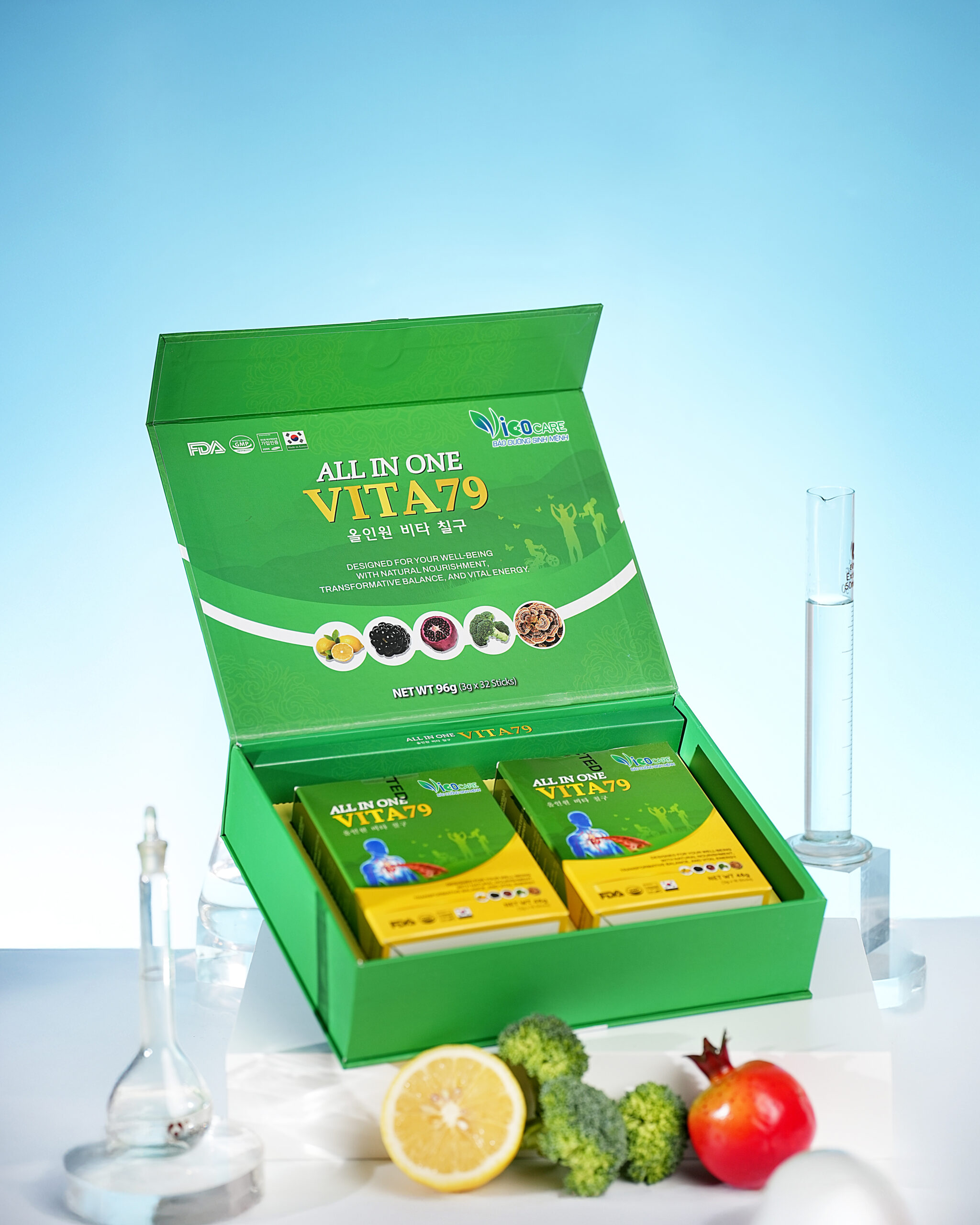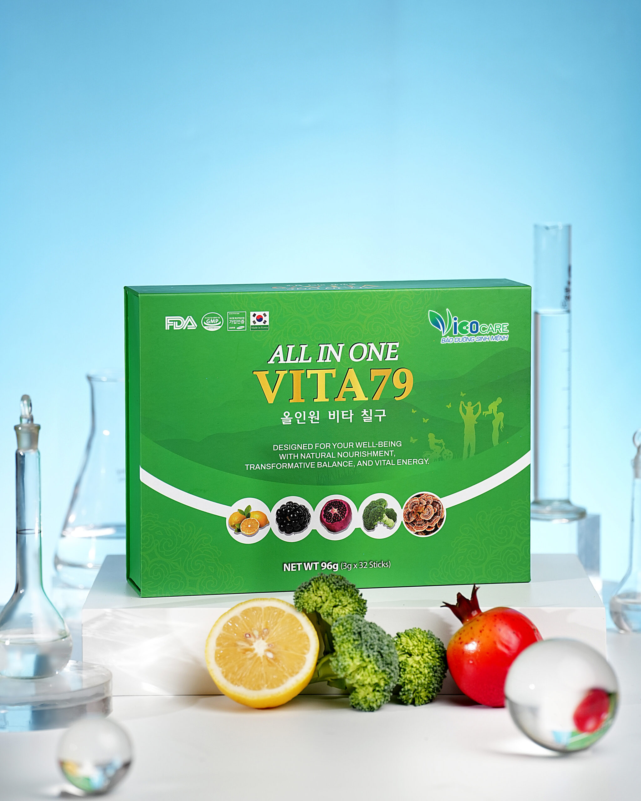 Là sự kết tinh của 79 thành phần dưỡng chất bao gồm vitamin, vi khoáng, axit amin, axit béo, enzym và lợi khuẩn thiết yếu nhất cho cơ thể mỗi ngày